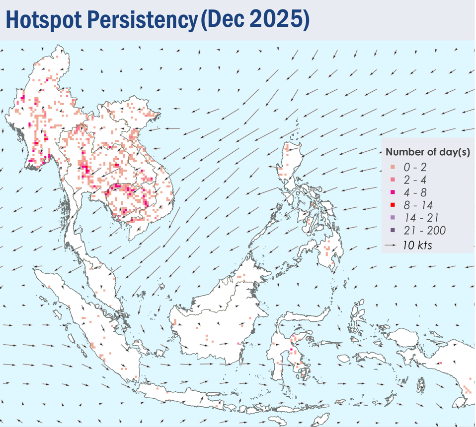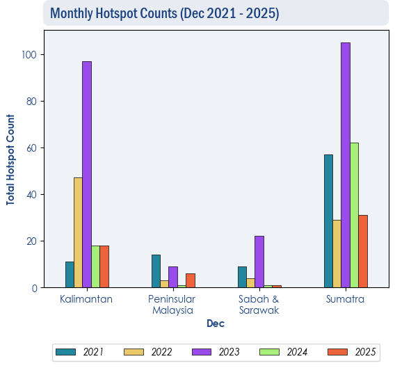 1.3 The overall hotspot counts in December 2025 over the ASEAN region were generally lower than or comparable to previous years.