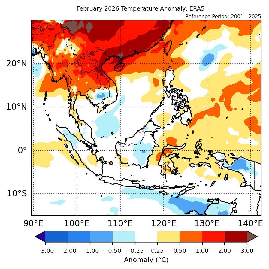2.2 La Niña conditions persisted and continued weakening in February 2026. La Niña events tend to bring wetter-than-average conditions to much of the Maritime Continent during this time of the year. The Indian Ocean Dipole (IOD) is currently in the neutral state.